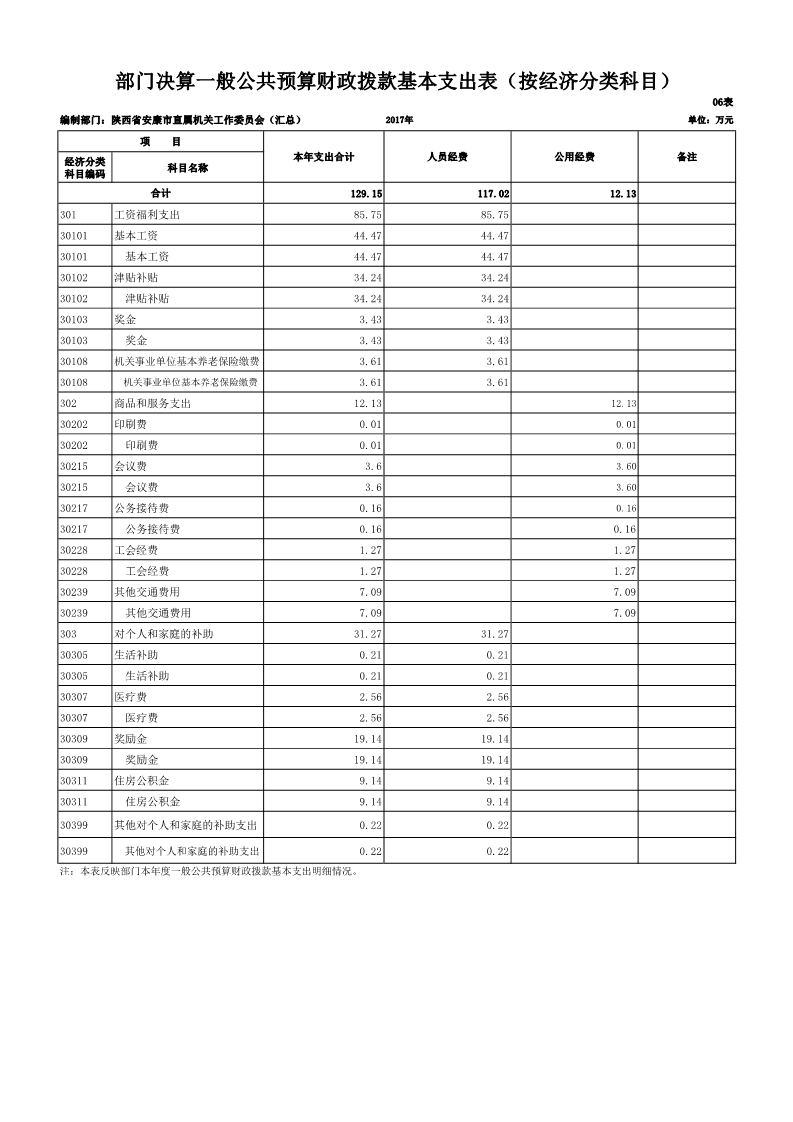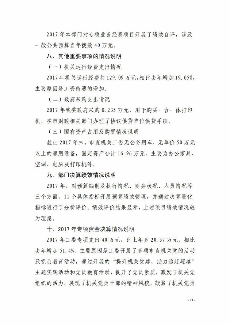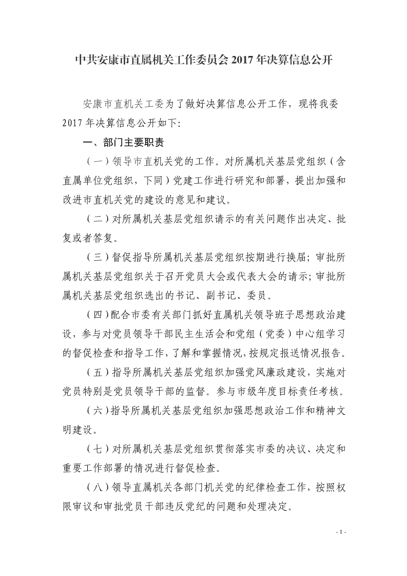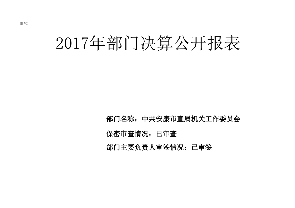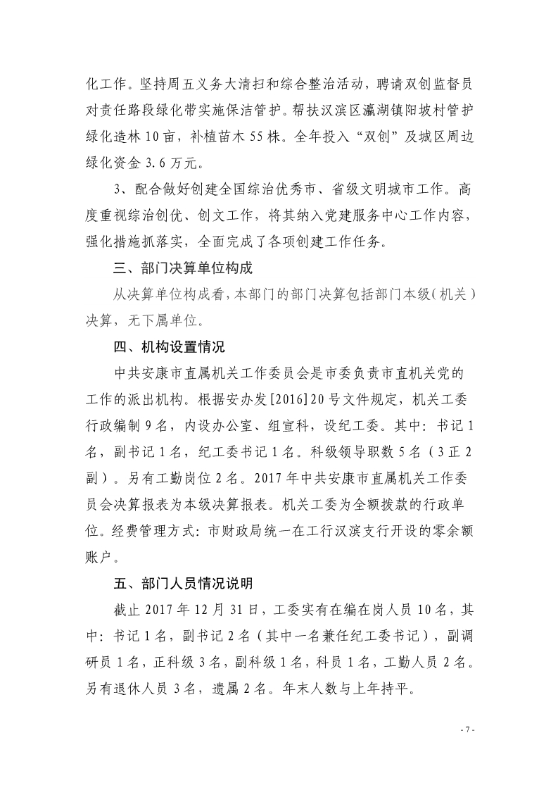 中共安康市直属机关工作委员会2017年度决算说明