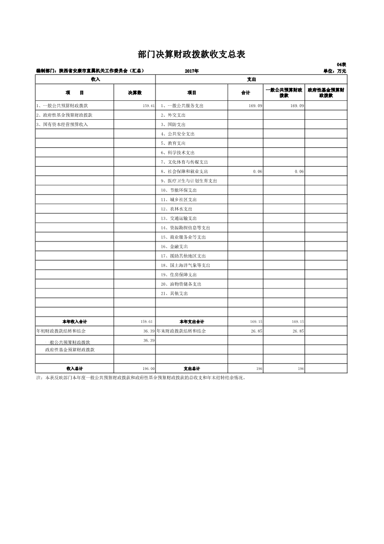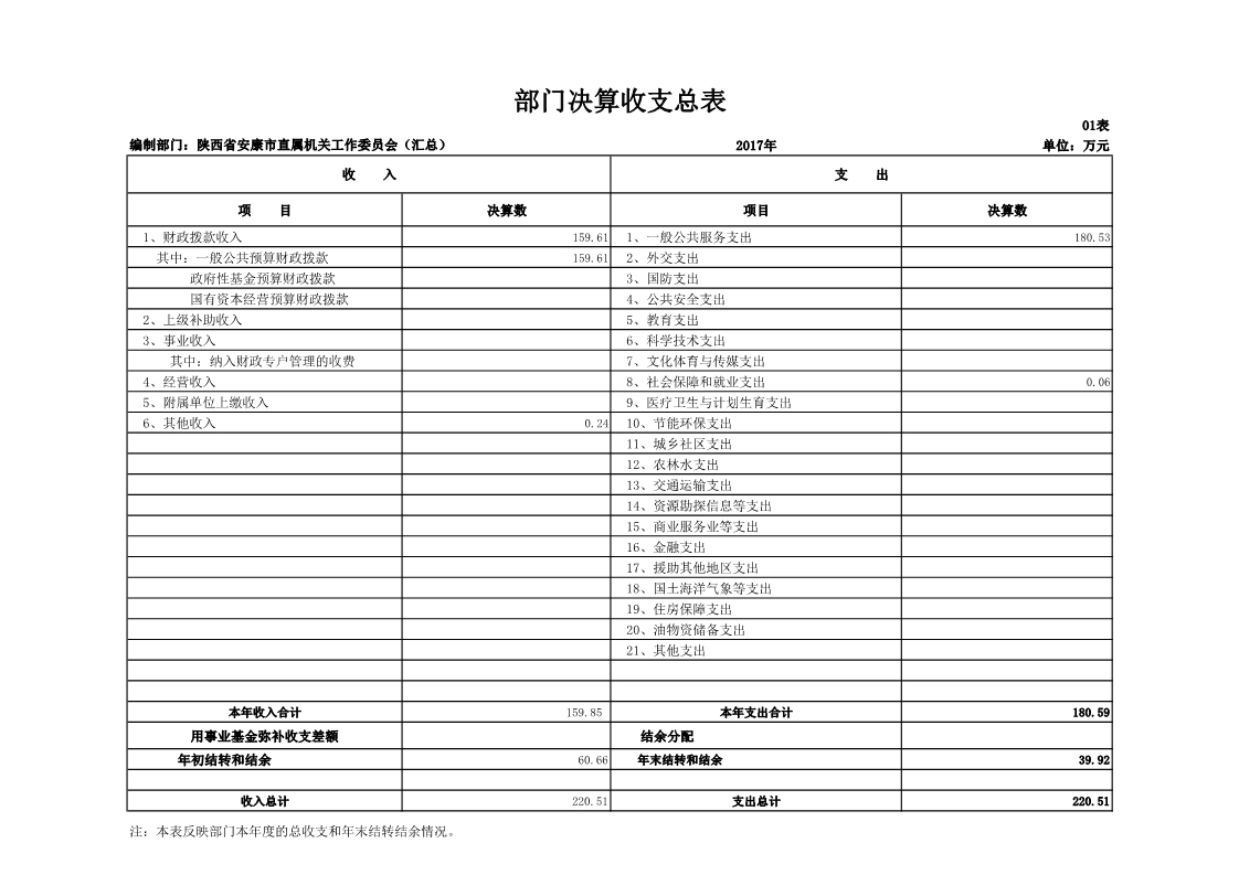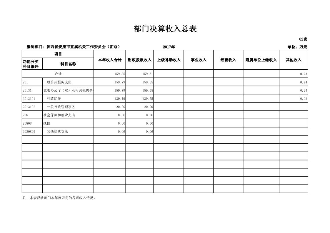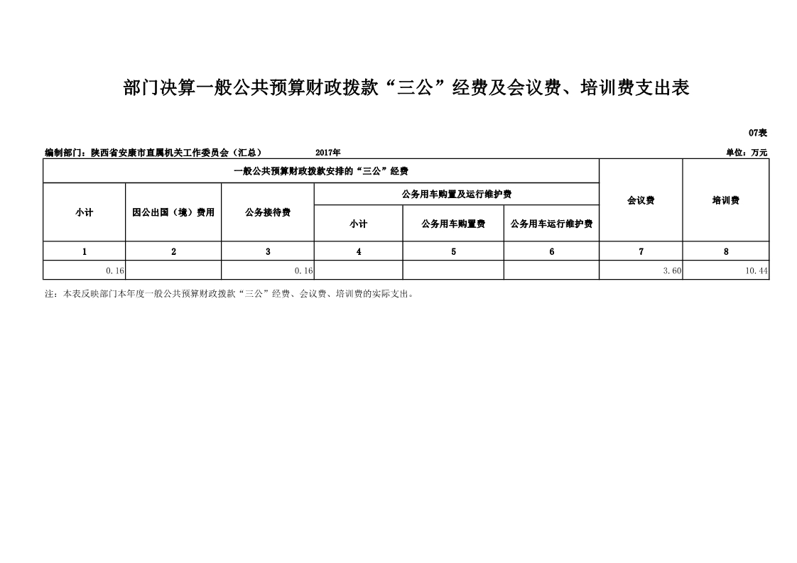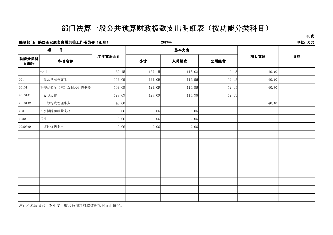 中共安康市直属机关工作委员会2017年度决算说明