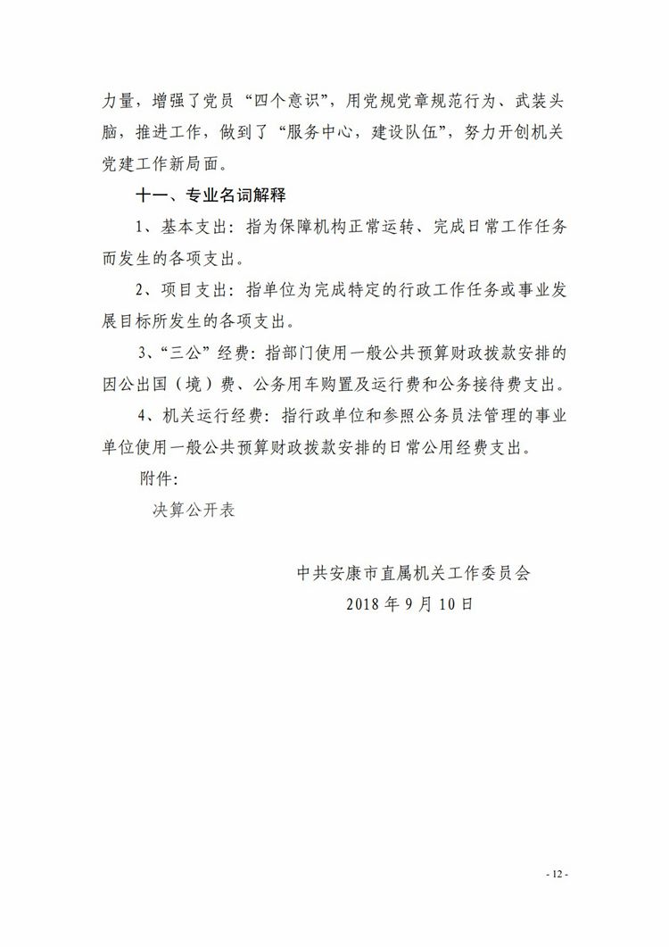 中共安康市直属机关工作委员会2018年预算信息公开
